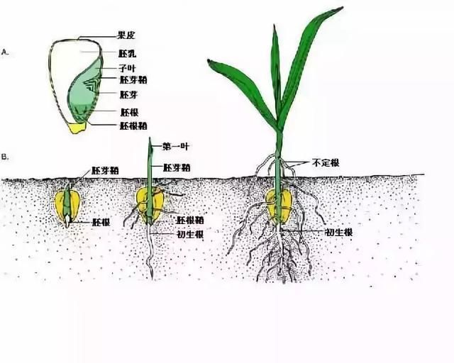 水、溫度、氧氣是種子發(fā)芽、出苗的三個(gè)最基本條件。玉米種子由兩部分組成,一部分是將來(lái)長(cháng)成植株的“胎兒”, 名稱(chēng)叫胚;另一部分是供“胎兒”長(cháng)大的營(yíng)養物質(zhì),名稱(chēng)叫胚乳。